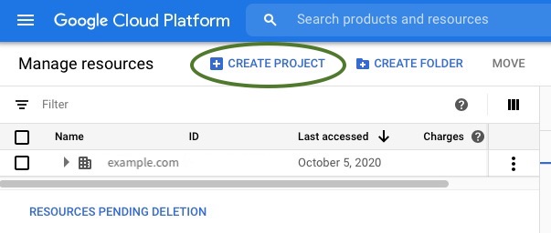 - Go to https://console.cloud.google.com/cloud-resource-manager and click on Create Project (see figure below). While you could also use the web-based Google setup tool recommended by the Google document, I find that using the cloud resource manager page referenced above simplifies naming your project something other than “My Project”.