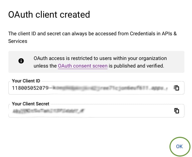 - Step 5: Create and download your project’s OAUTH credentials from Google. This step will no longer be required after the new version of