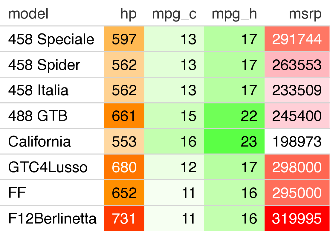 Cars heatmap (gt / R)#